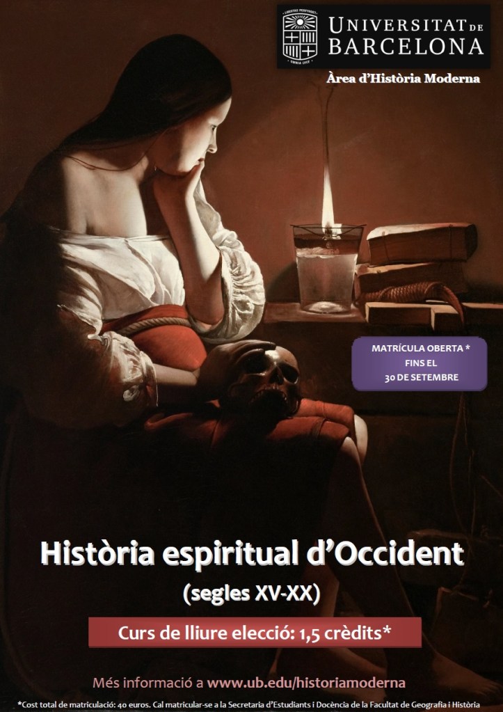 El curs d’extensió Història espiritual d’Occident (segles XV-XX) s’adreça a estudiants de grau i públic en general amb l’objectiu d’oferir una formació en història de la cultura religiosa del món occidental des de la Baixa Edat Mitjana i el Renaixement fins a principis del segle XX. El curs es compon de sessions teòriques amb seminaris d’aprofundiment que serveixen de formació complementària, alhora necessària, per a estudiar l’evolució de la religiositat i les seves formes. L’alumnat treballarà, autònomament, un conjunt de materials bibliogràfics posats a la seva disposició mitjançant el Campus Obert.